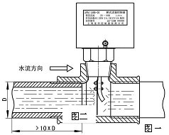 ● 将装上靶的控制器安装在被控系统中的螺纹接口上,介质流动方向与罩壳上箭头方向相同,并与靶片正面 ( 没有靶杆的一面 ) 垂直,靶片前端应有导向管,导向管长度应大于:管道直径 10 倍( 10D )。