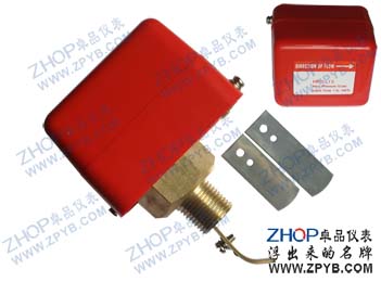 当流速超过设定值时,流体推动桨片,通过HFS-25水流开关内的机械装置带动顶部的微动开关,其单刀双掷开关触点(SPDT)可使一个回路导通,而同时切断另外一个回路.该水流开关通常使用在需要联锁作用或"断流"保护的场所。可调整桨片的数量及修整桨片长度,以适应不同管径及流速的需求。